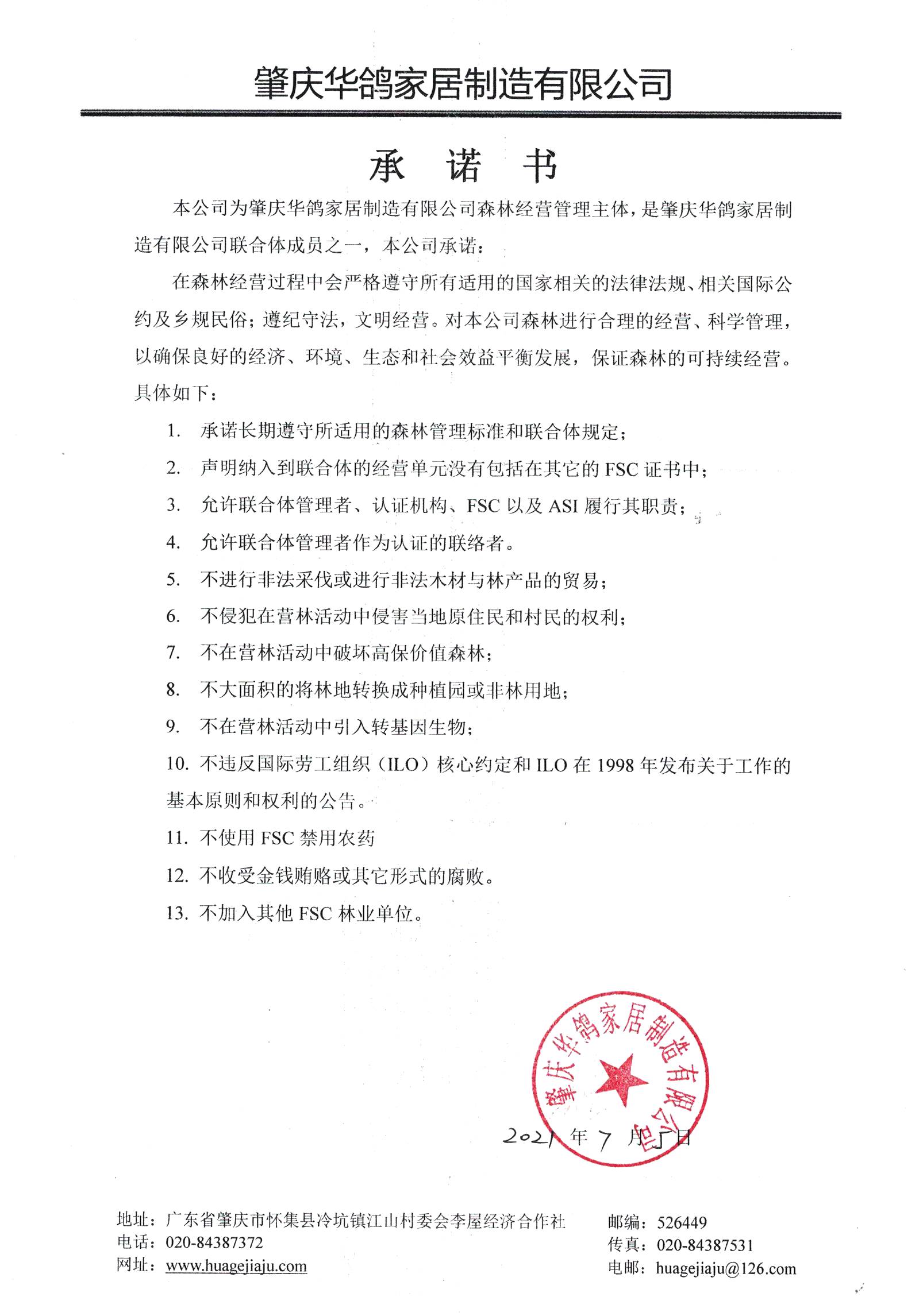 森林经营管理承诺书